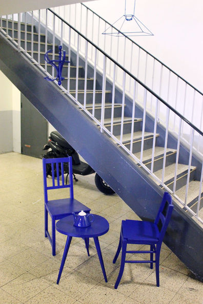 Loin de vouloir créer l’utopie d’un bonheur partagé, Clémence et Ossiann tentent de favoriser la mutualisation, le partage et les services entre voisins, conscients que le “vivre-ensemble” est d’abord une pratique du quotidien. En effet, à l’heure où la notion de commun est plus que jamais mise à l’honneur et exacerbée majoritairement en ligne grâce à des plateformes de partage, le projet "Entre 2 Paliers" matérialise, dans un contexte urbain actuel, ce désir de lien à échelle locale en proposant des installations et des actions au fil des paliers qui invitent et incitent à l’échange. On trouverait, dans les parties communes, la recette du plat dont on sent l’odeur, le nom de la musique que l’on entend jusqu’au 6ème, chez quel voisin toquer pour trouver la perceuse que vous entendez chaque mercredi mais qu’il vous manque pour finir de monter votre nouvelle table ou encore un grand mur d’expression pour assouvir toutes vos pulsions artistiques.